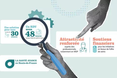 La santé avance en Hauts-de-France ! Dans la région, le réseau France santé se déploie, avec l'objectif de rendre plus lisible et accessible l'offre de soins de proximité et ainsi répondre aux attentes fortes des citoyens. Le point en images et en chiffres clés sur cette dynamique.