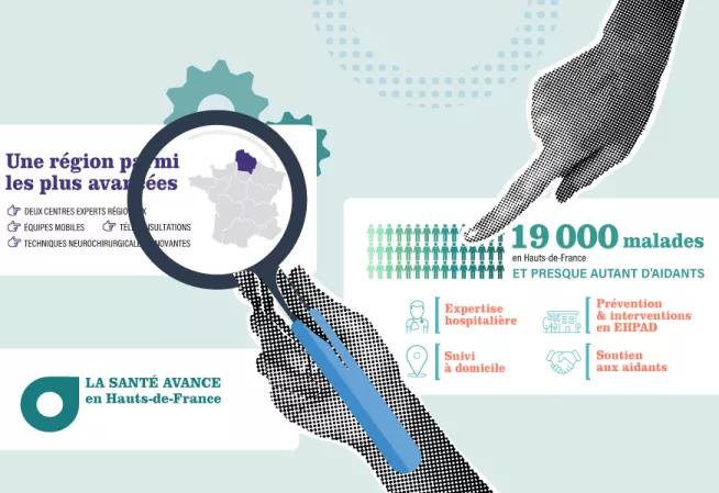Sur la droite une carte de France des régions grisées avec la région Hauts-de-France signalé en vert