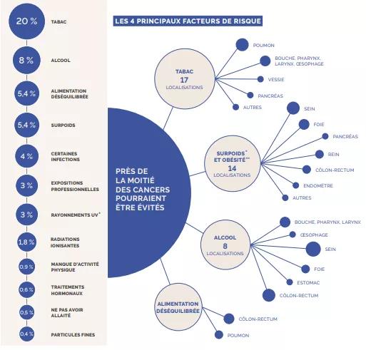Une grande partie des cancers est considérée comme évitable. En effet, on estime que 40% des nouveaux cas de cancers sont attribuables aux modes de vie et pourraient être évitables par des changements de comportements.