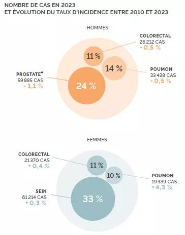 prostate : 59 885 cas (24 %), incidence en baisse de 1,1 %