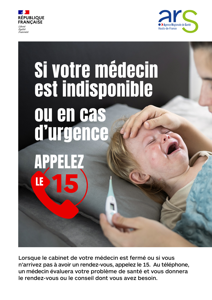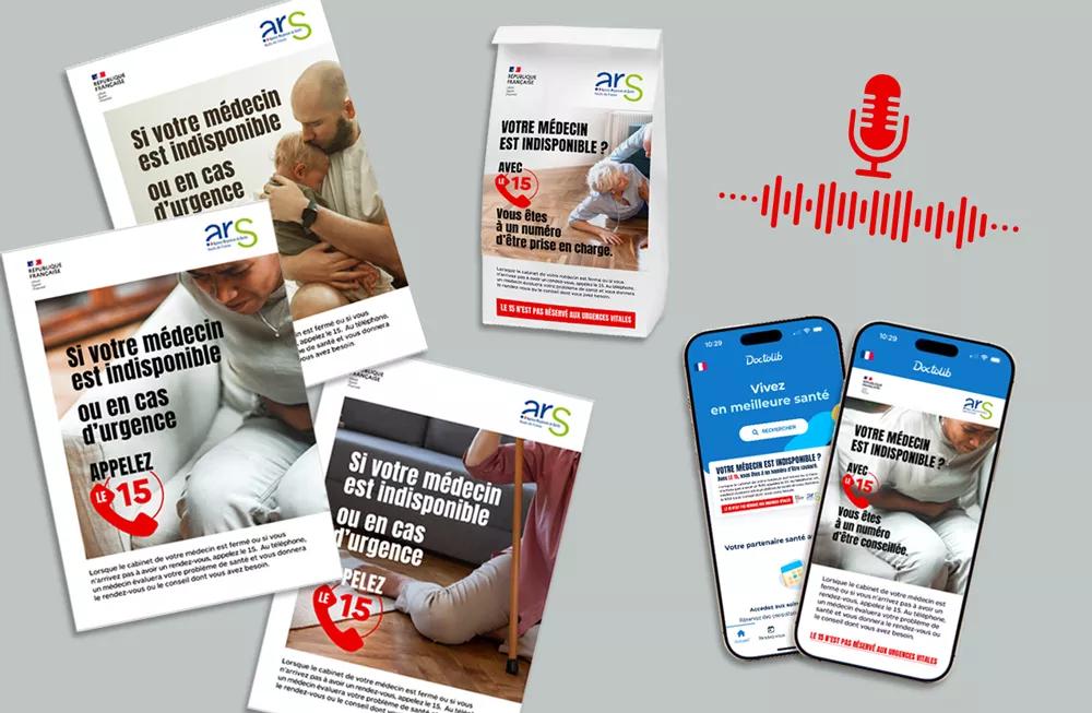 Campagne « Si votre médecin est indisponible ou en cas d’urgence, appelez le 15. » - représentant des visuels de campagne