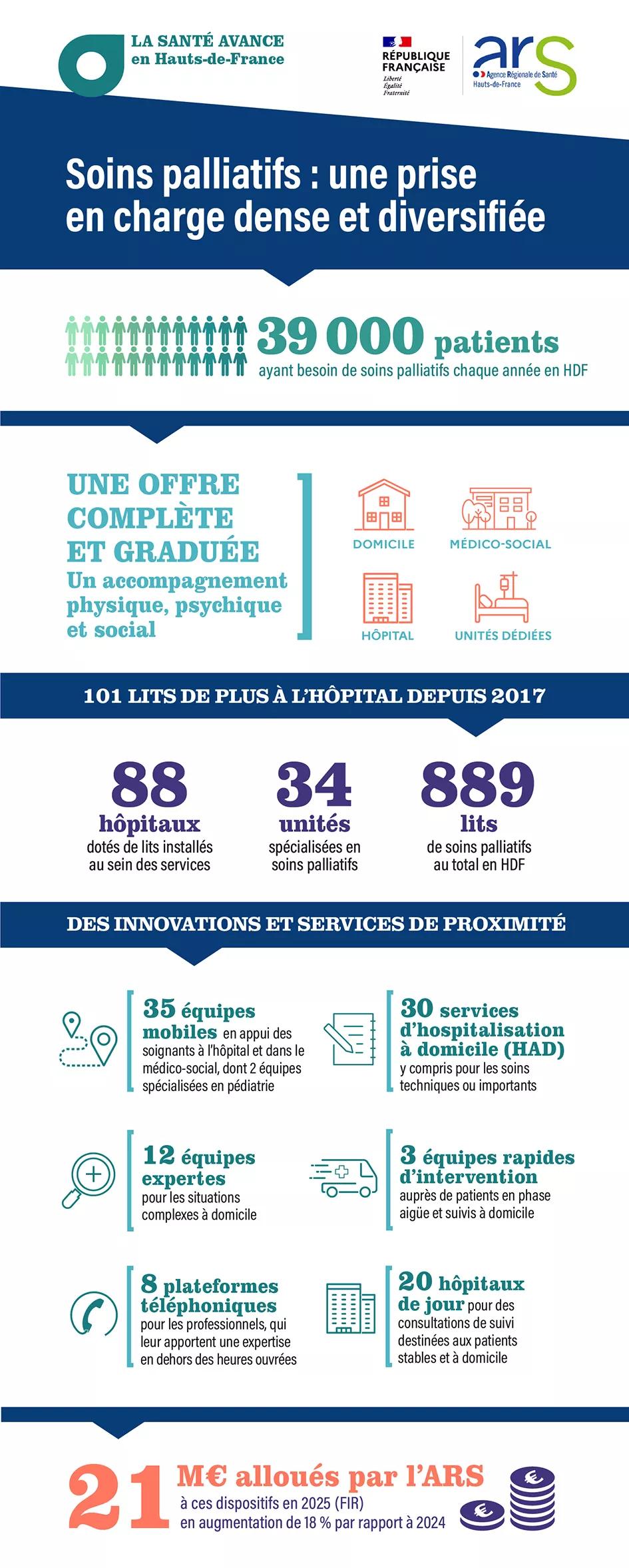 - Une donnée mise en avant : 39 000 patients ont besoin de soins palliatifs chaque année en Hauts‑de‑France.