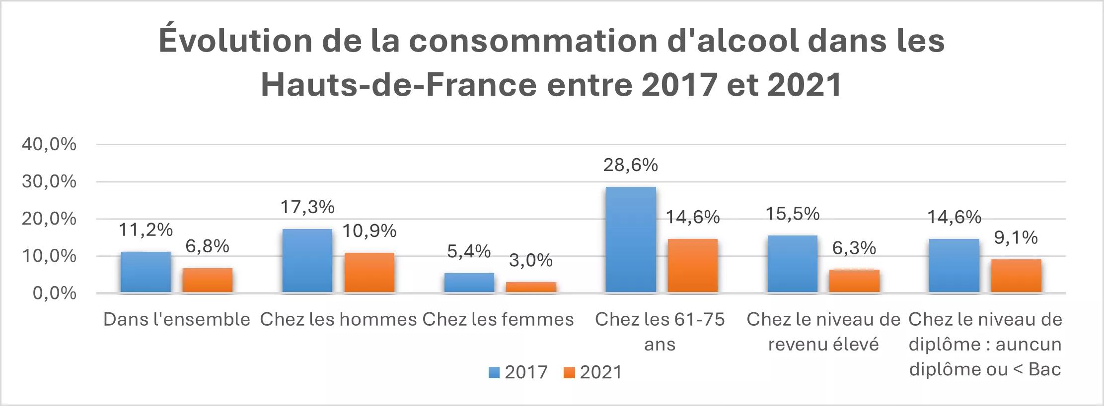 Titre : Évolution de la consommation d’alcool dans les Hauts-de-France entre 2017 et 2021.