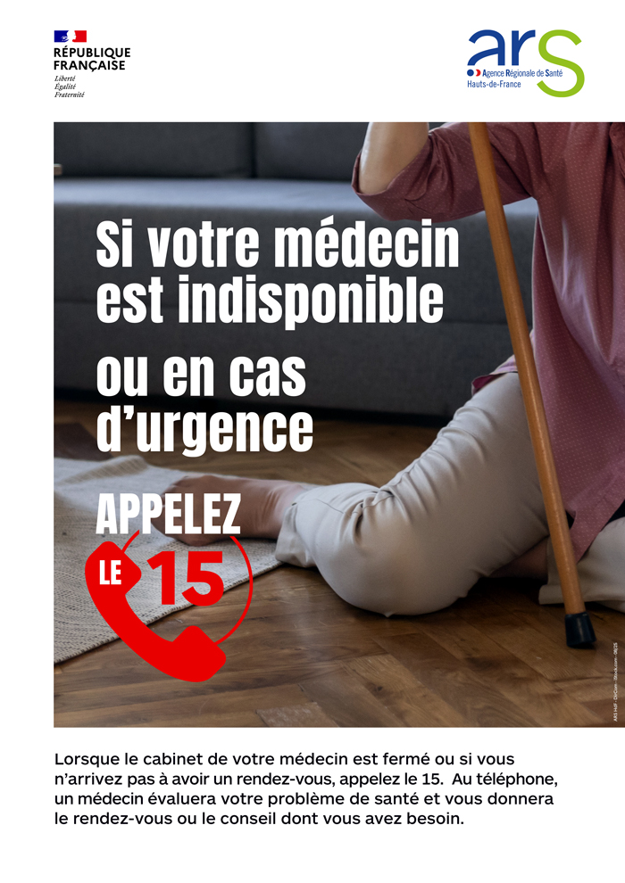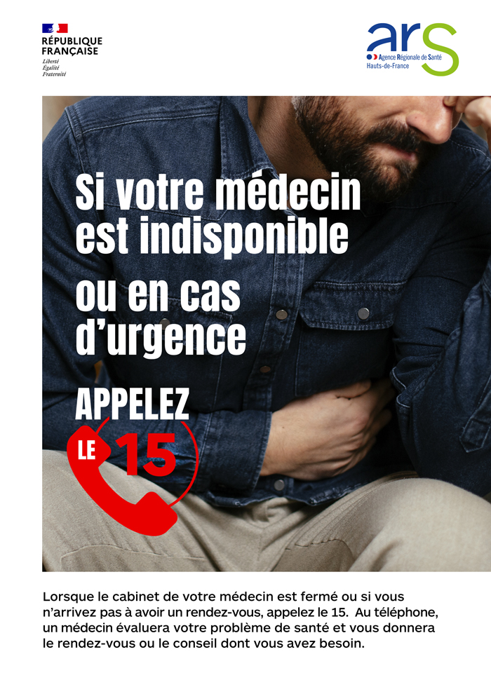 Campagne « Si votre médecin est indisponible ou en cas d’urgence, appelez le 15. » - représentant des visuels de campagne